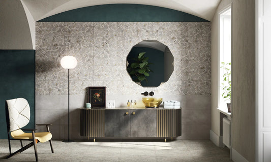 Suprafețe care redau atmosfera subtilă a spațiilor atemporale, unde anotimpurile se opresc pentru a păstra neatinsă energia vitală a naturii prețioase. Gresia porțelanată recreează farmecul grădinilor de iarnă prin efecte materiale rafinate și o paletă de culori plină de emoție. Elemente ale arhitecturii istorice și ale vechilor vile aristocratice definesc un nou stil pentru interioarele contemporane, prin texturi și grafisme decorative, versatile, într-o grosime de doar 7 mm, potrivite atât pentru pereți, cât și pentru pardoseli.